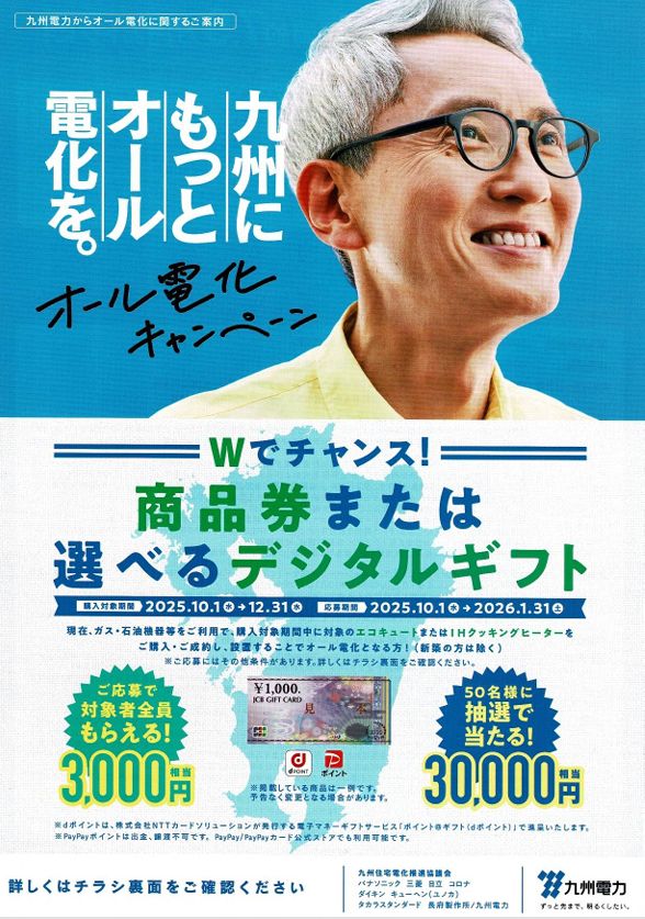 ※4:本キャンペーンの対象は、九州地域とし、「離島等供給約款」の適用エリアは対象外となります。