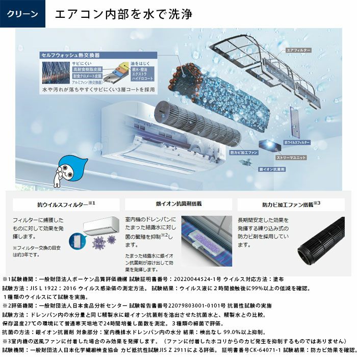 エアコン内部のカビの繁殖を抑制。